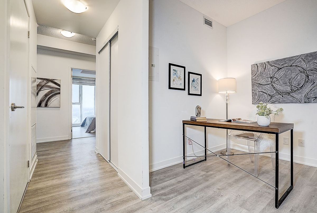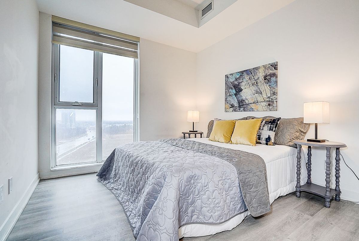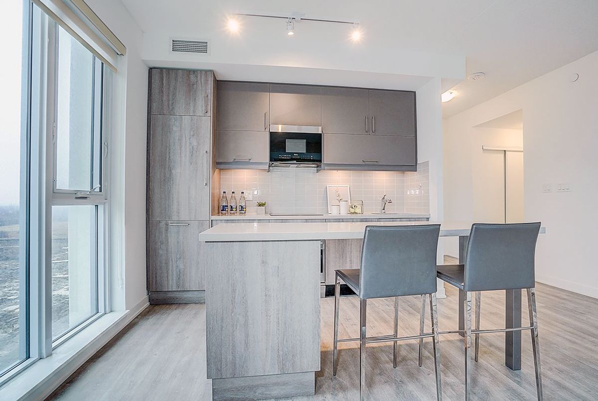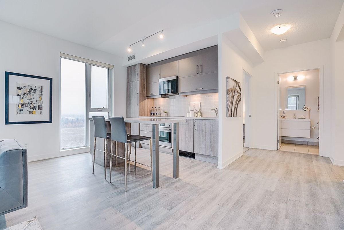 Luxury 1-Year-Old Condo in the Heart of Downtown Markham! Spacious 2 Bedroom + Den (Den can be used as a 3rd Bedroom) with 2 Full Bathrooms, offering a practical and functional layout with approximately 962 SF plus balcony, located on the 9th floor with unobstructed northwest views. Features include 9-ft ceilings, an open-concept modern kitchen with granite countertops and built-in appliances, ideal for both everyday living and entertaining. Includes 1 parking space and 1 locker for added convenience. Prime location just steps to Markham Civic Centre, supermarkets, restaurants, Cineplex, Whole Foods, and York University Markham Campus, and close to top-ranked Unionville schools, with easy access to Hwy 404 & 407, Unionville GO Station, Viva Transit, and YMCA. Move-in ready and meticulously maintained-an exceptional opportunity to own in one of Markham's most sought-after communities!
